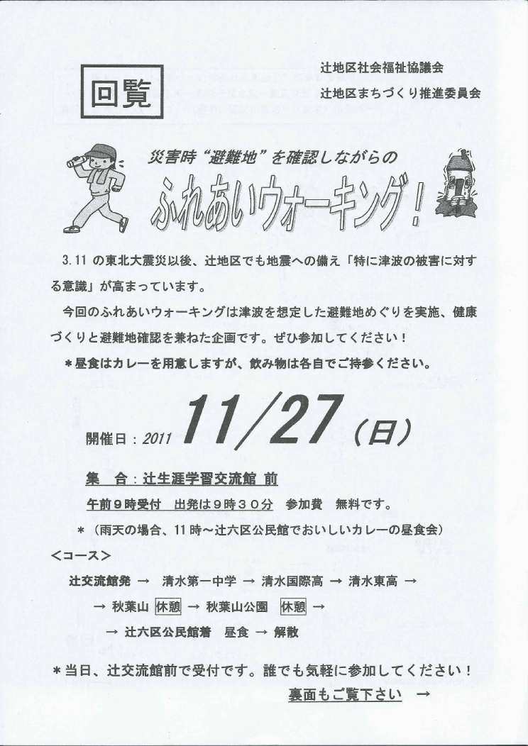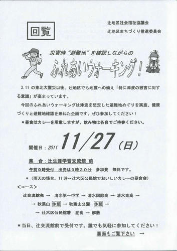 11月27日(日)避難地巡りを兼ねたウォーキングがおこなわれます