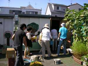 問題はないかと聞くと、「犬猫の糞が困る」「(住民が植えられるスペースに)フェンスにからむようにゴーヤを植えたら市から抜けと言われた」「花はいいが野菜はダメ、野菜の育つところを見るのは教育にもいいのに」「つつじが多く植えすぎて大きくならない」