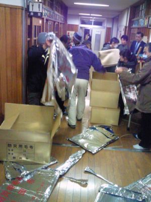 試しの写真を掲載します、東北の震災でJR清水駅でおろされた人たちに、辻小の避難所で毛布を配ったところです