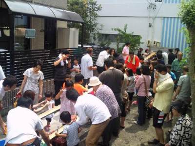 子供や父兄近所の人たちが続々集まり大盛況でした 今年は五区の子供会も参加しました